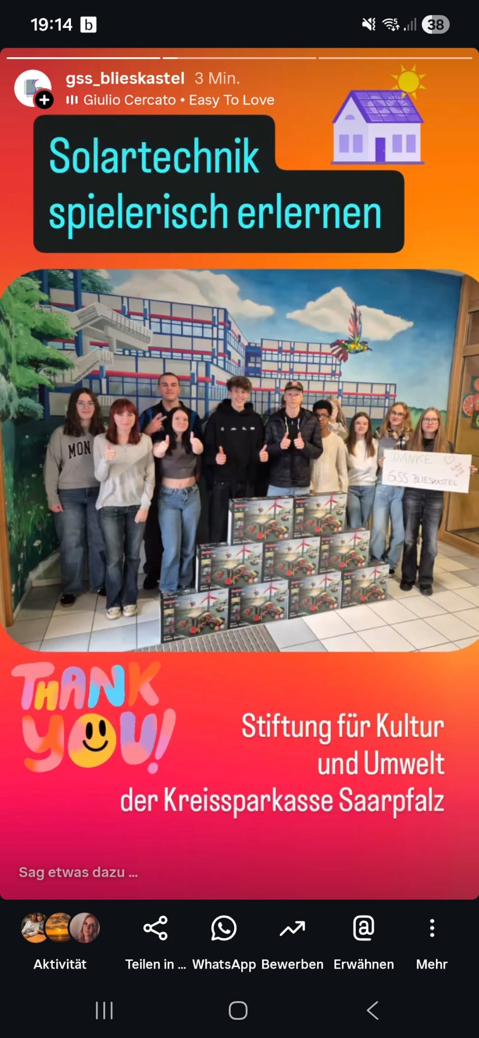 Die Stiftung für Kultur und Umwelt der Kreissparkasse Saarpfalz fördert Umweltprojekte der Biosphärenschulen. Wir bedanken uns herzlich für die Finanzierung von mehreren Fischer Baukästen Green Energy Profi für unsere Technik und Klima Kids.